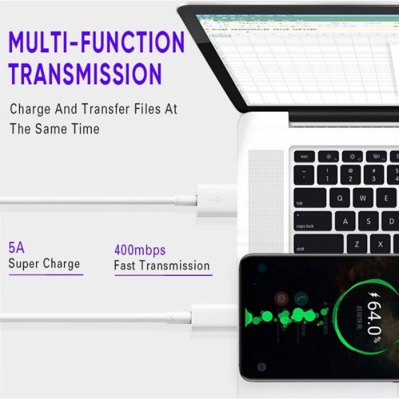 Kabel Data 5A Super Fast Charging Type C - Micro USB - Lightning / Kabel Charger Turbo 5A
