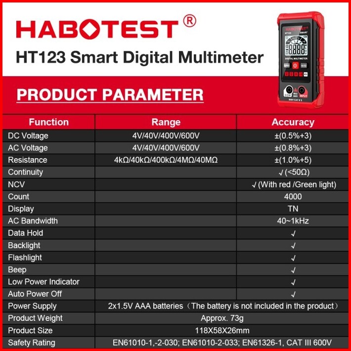 Habotest Multimeter Digital Otomatis 600v Pengukur Tegangan Listrik Ac Dc Digital Multimeter Ac Dc 4000 Counts Multitest