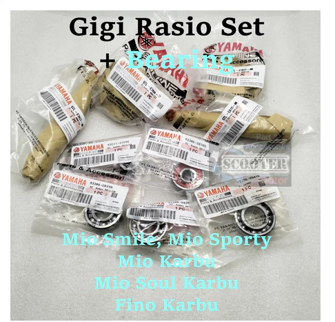 Gigi rasio set + bearing 5TL Yamaha Mio Smile Sporty Fino Soul Karbu Kualitas original Presisi tidak bunyi dan awet Gir