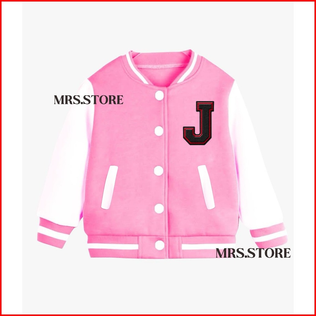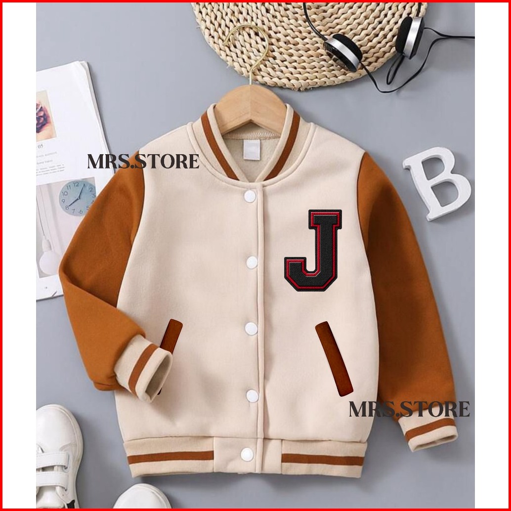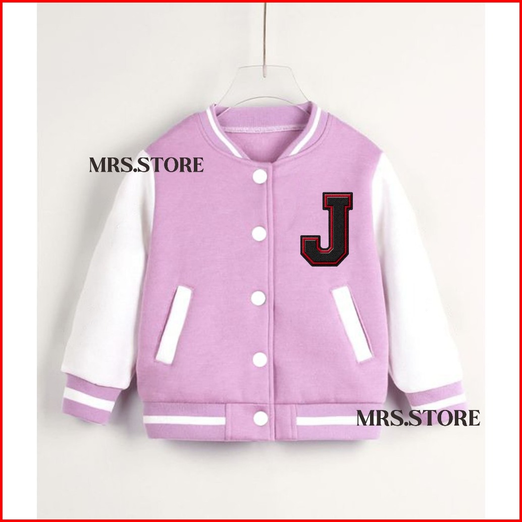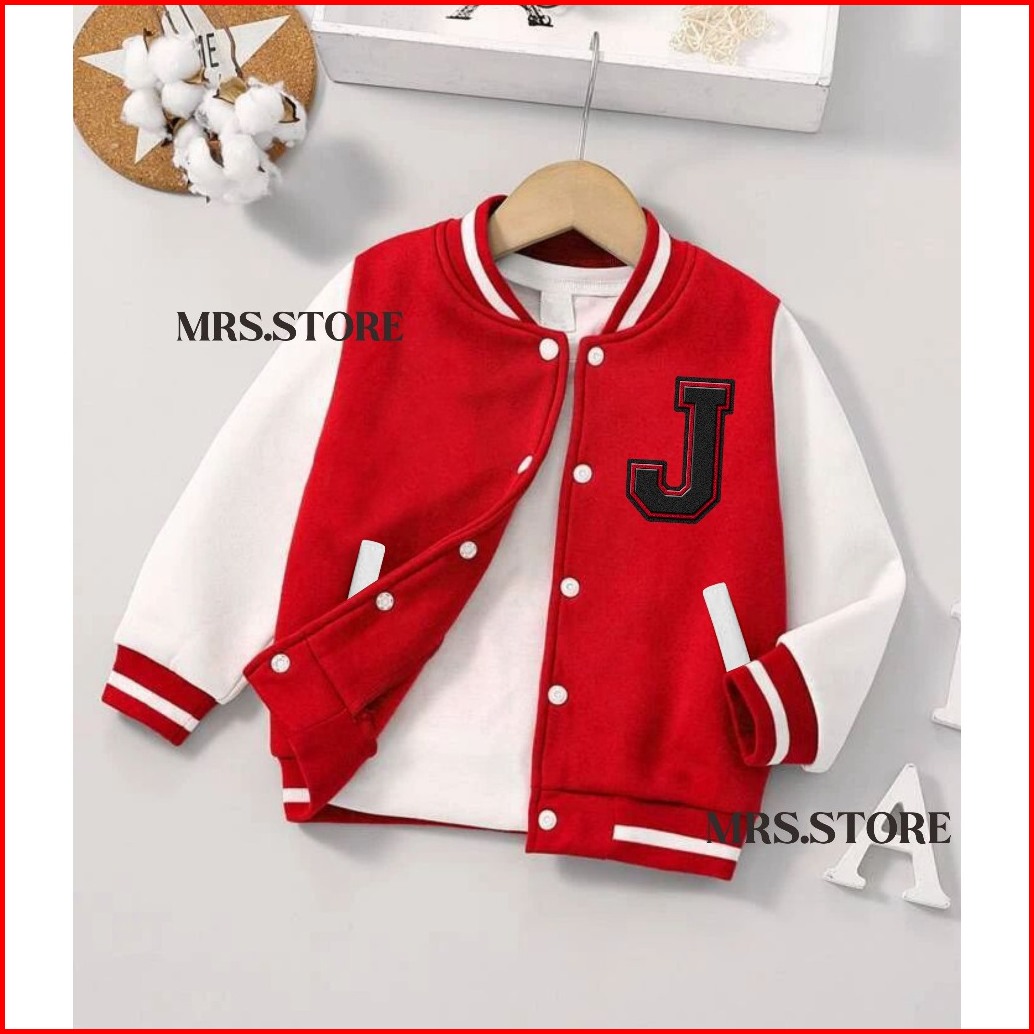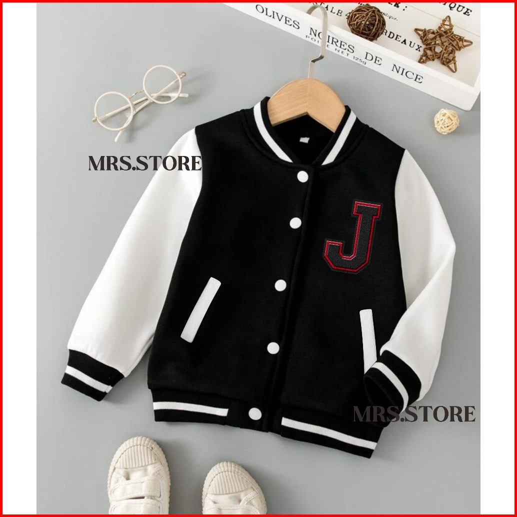 Jacket Baseball Varsity Bomber Anak Inisial J Perempuan Laki Laki Umur 2 3 4 5 6 7 8 9 10 11 12 Tahun Full Sablon Dtf Pr