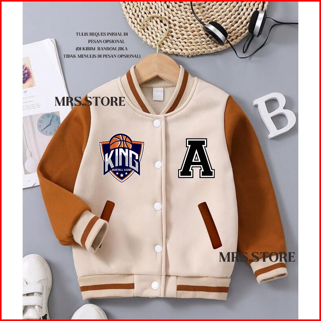 Jacket Baseball Varsity Anak Laki Laki Perempuan King Umur 2 3 4 5 6 7 8 9 10 11 12 Tahun Full Sablon Dtf Premium Jacket