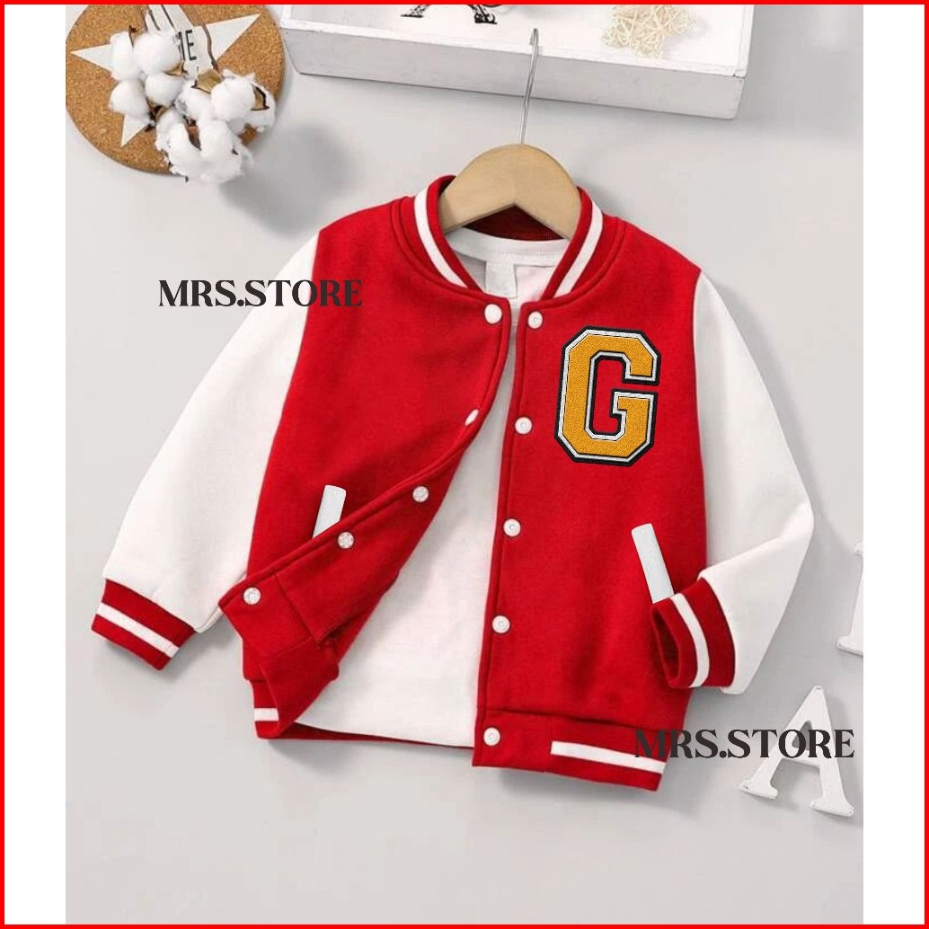 Jacket Baseball Varsity Anak Inisial G Laki Laki Perempuan Umur 2 3 4 5 6 7 8 9 10 11 12 Tahun Jacket Varsity Anak Cewe