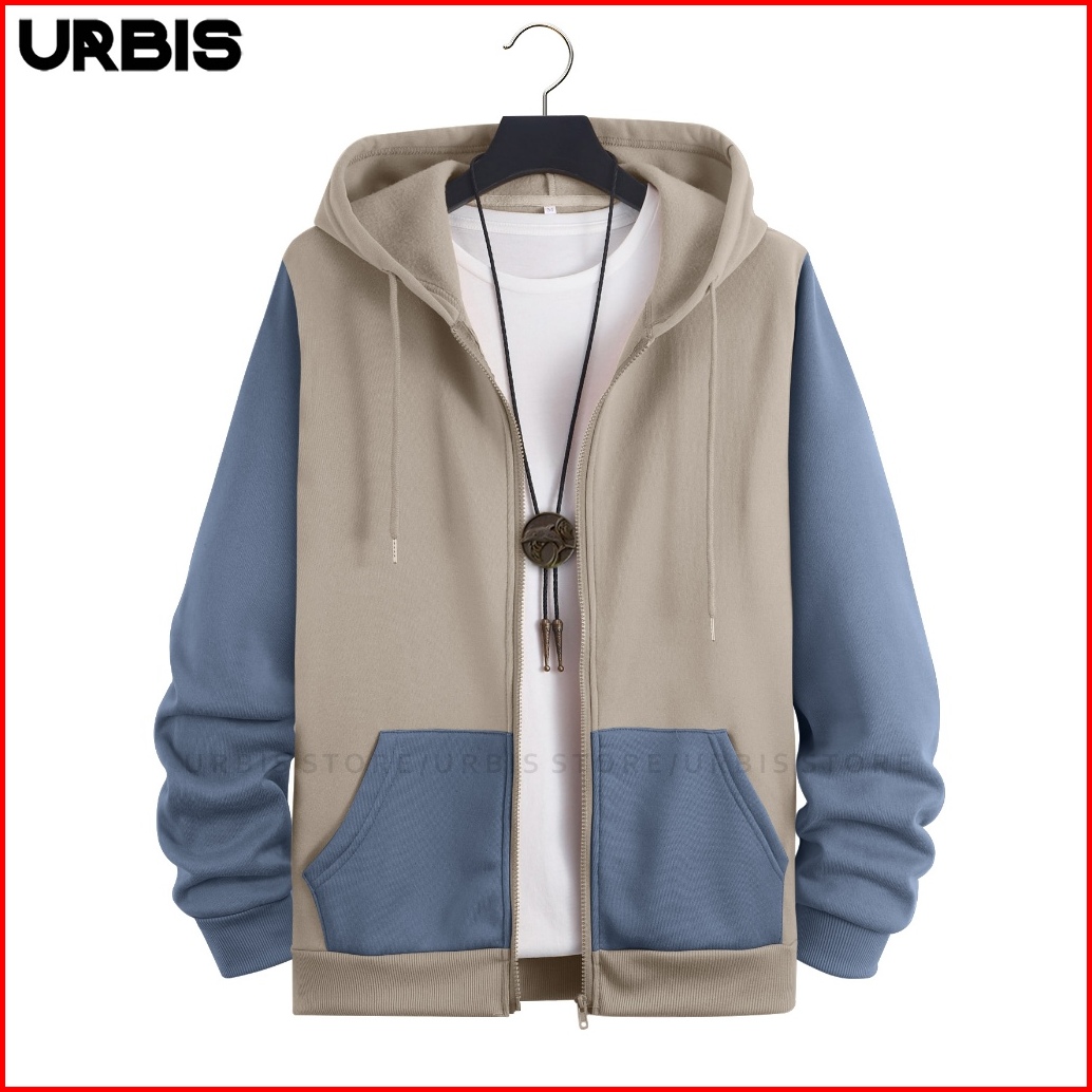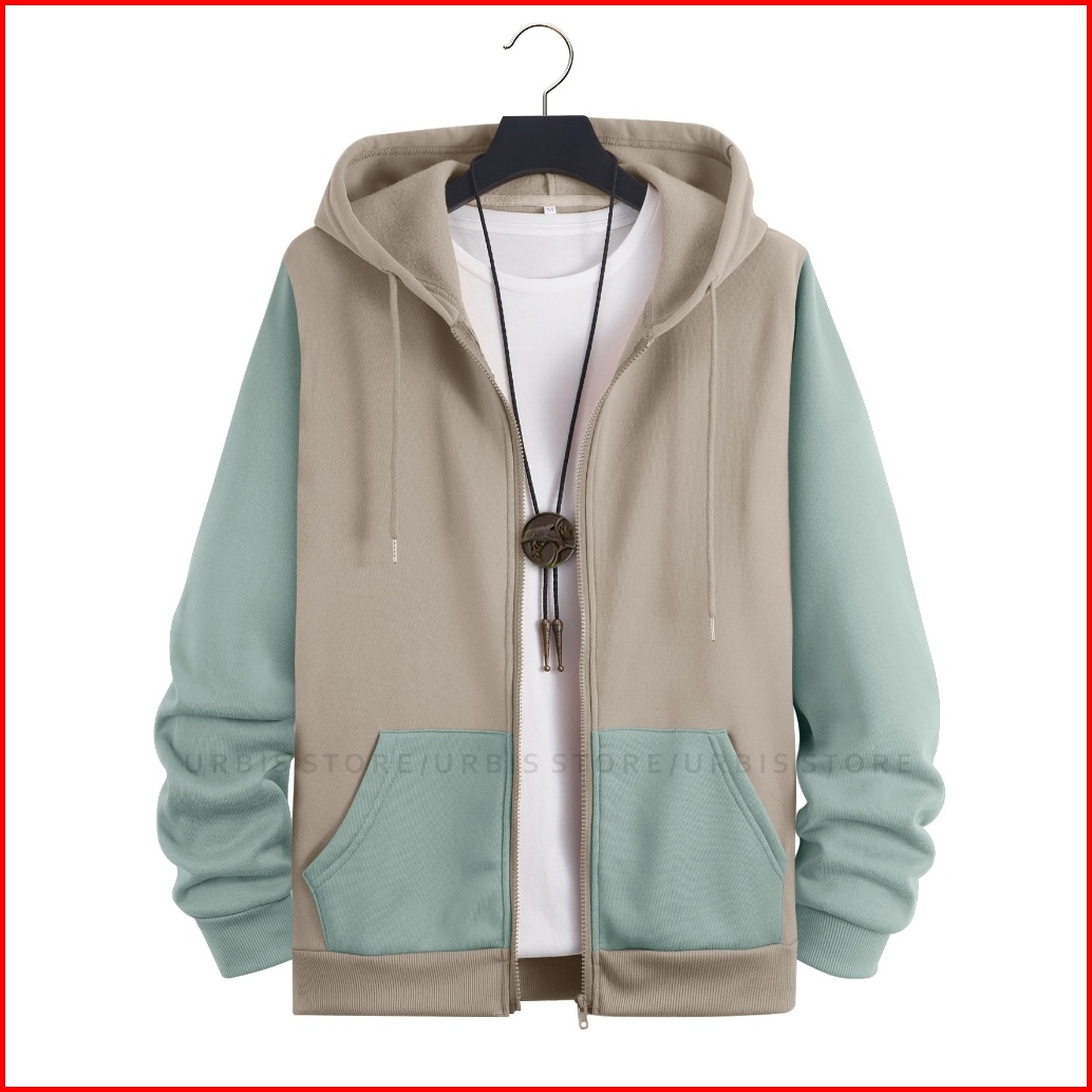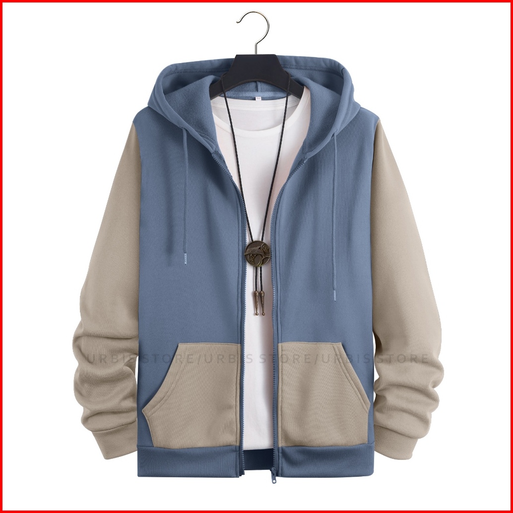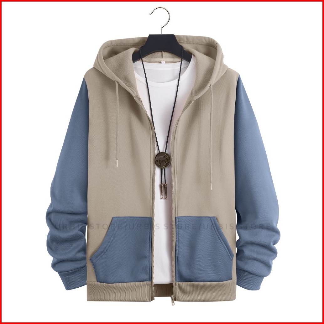 Jaket Hoodie Zipper Polos Pria Wanita Motif Kombinasi Warna Size M - Xxl Bahan Fleece Tebal Premium