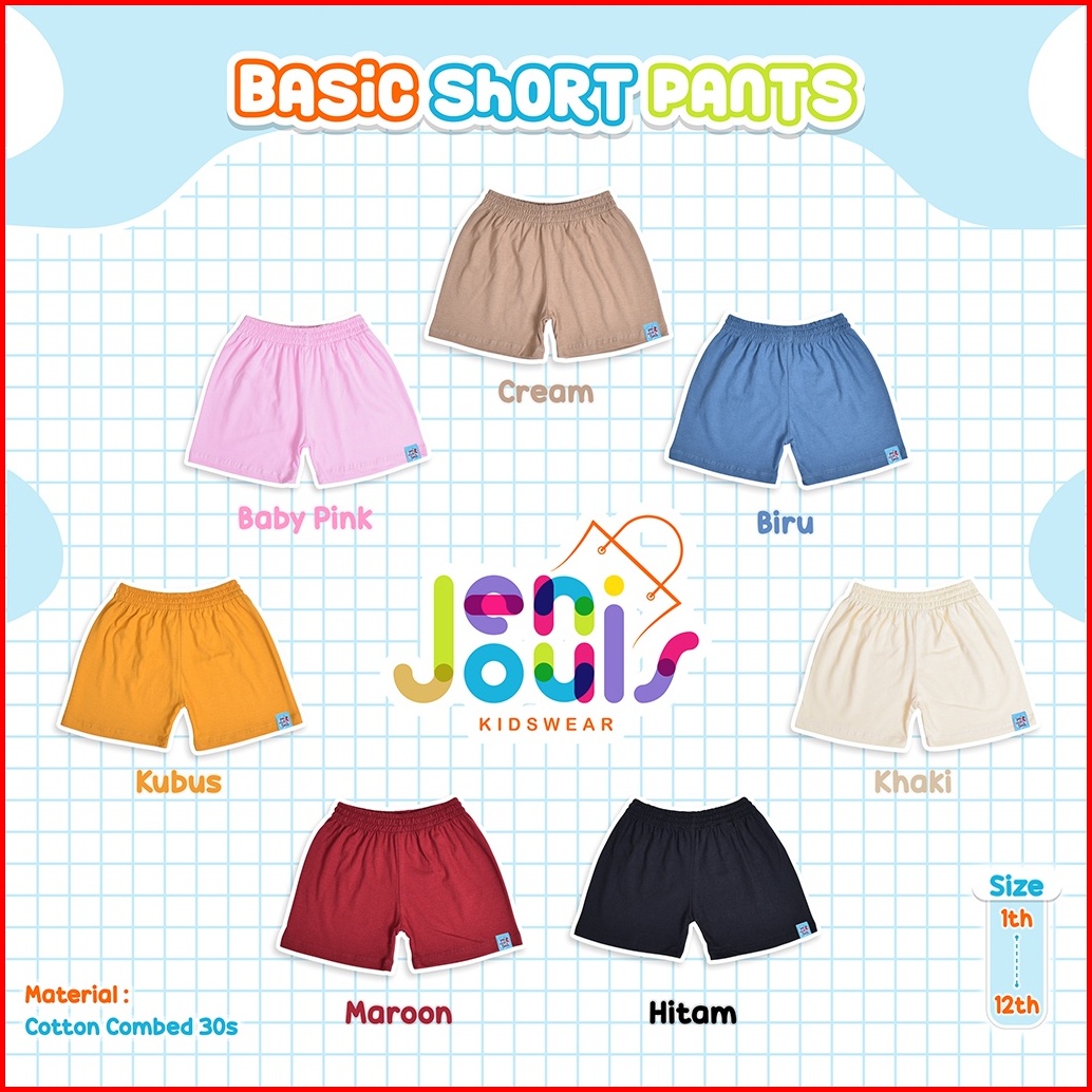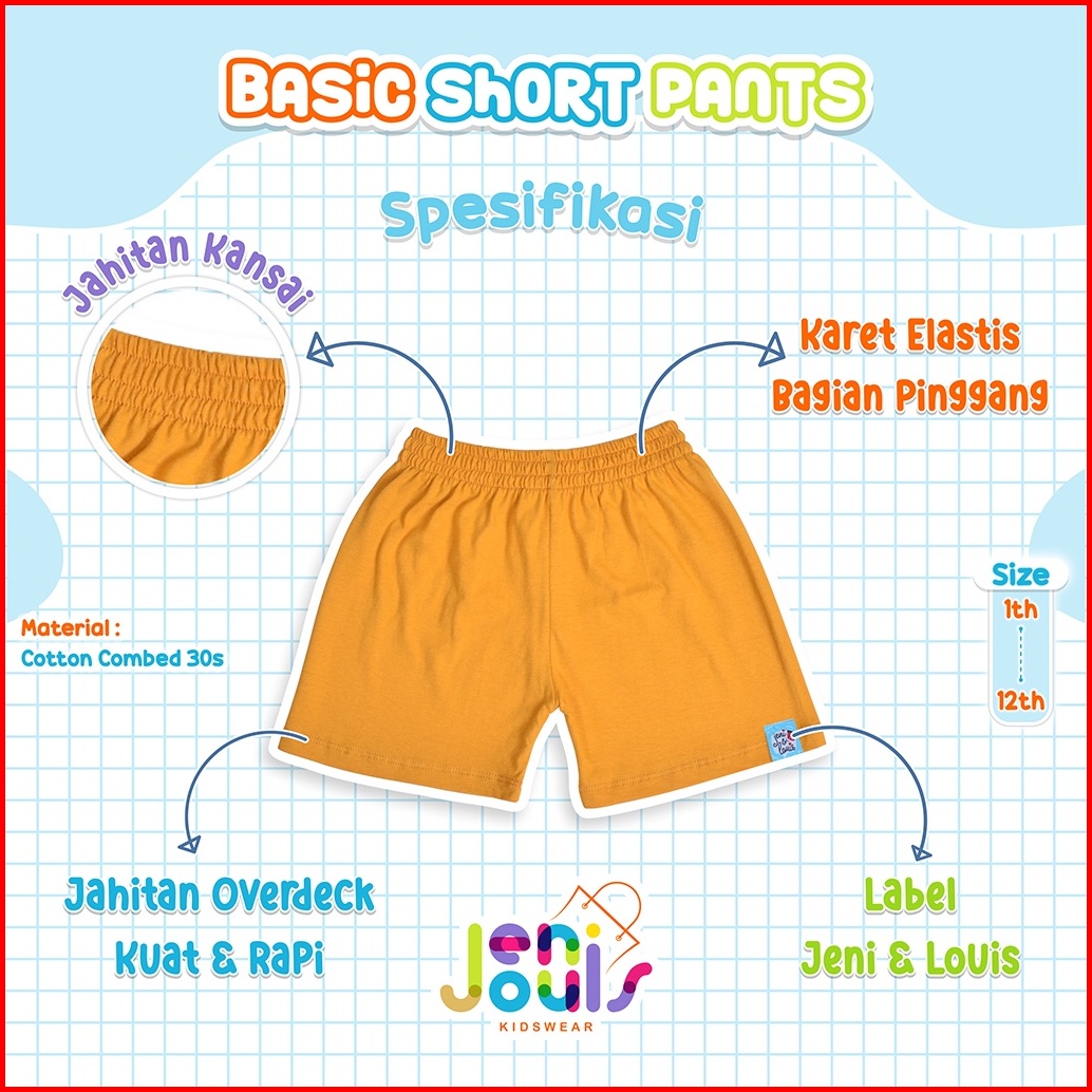 Celana Pendek Anak Polos Unisex Usia 1-12 Tahun Original Jeni Louis Celana Pendek Anak Laki Laki Celana Anak Perempuan