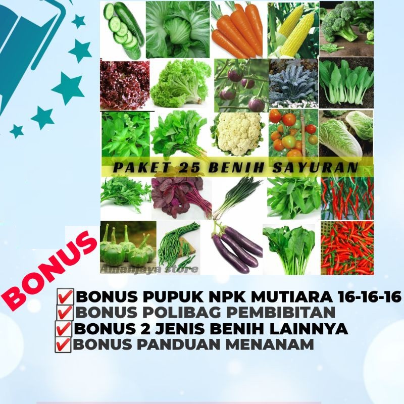 PAKET 25 JENIS BENIH SAYURAN+BONUS LAINNYA BISA DITANAM DITANAH DAN HIDROPONIK JUGA