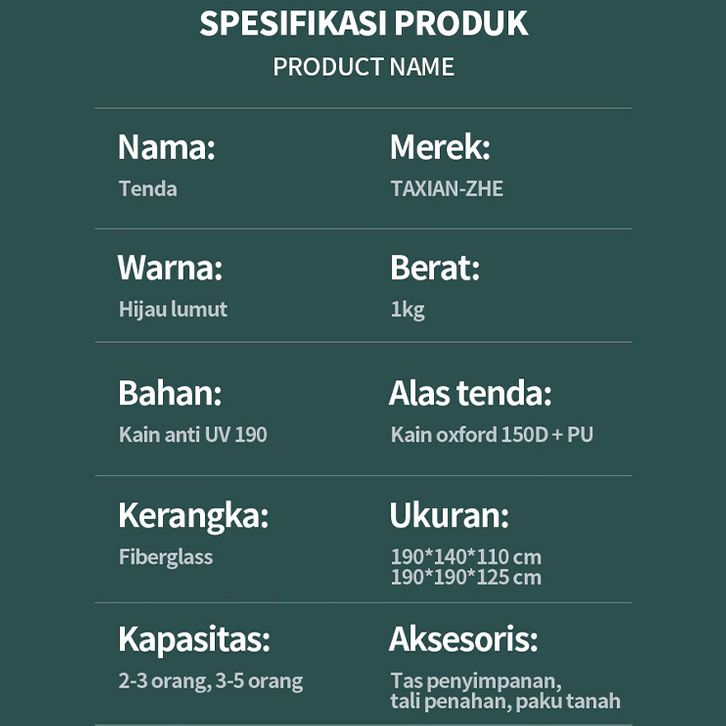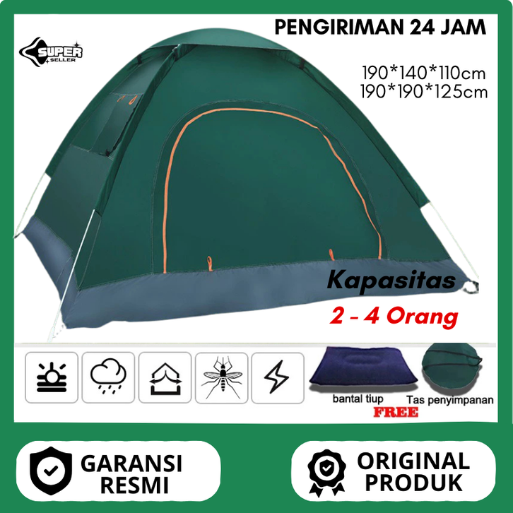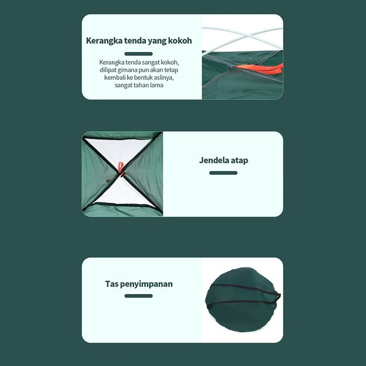 Tenda Camping 2*2M Kemah Luar Ruangan Anti UV, Tahan Air, Anti Serangga Tenda 3 - 4 Orang, Tenda Hijau untuk Dua Orang a