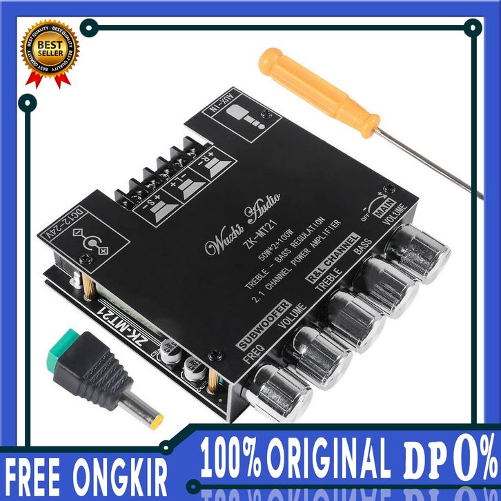 ZK-Mt21 Modul Power Amplifier Audio 2.1 Channel Bt Aux Digit High Power ZK-MT21 Sound Amp 2x50W+100W TPA3116D2 Murah