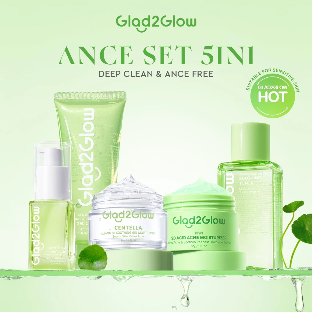 【5IN1 ACNE SET】Glad2Glow Acne Care bundle all in 1 - 3/4/5 PCS Skincare Paket | Glad 2 Glow Official Store