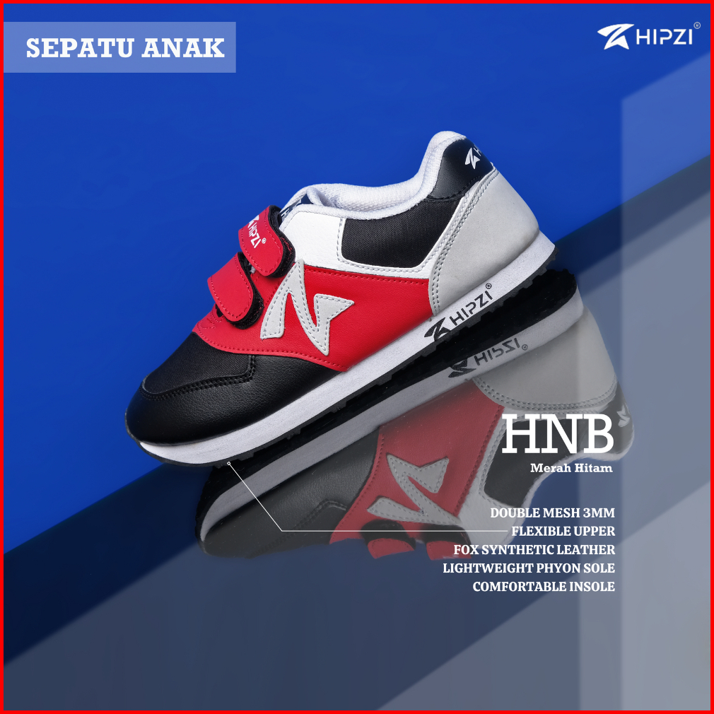 Hipzi Sepatu Anak Sneakers Anak Perempuan Laki Laki Cowok Cewek Tk Sd Paud Hnb Hitam Merah Terbaru 2023