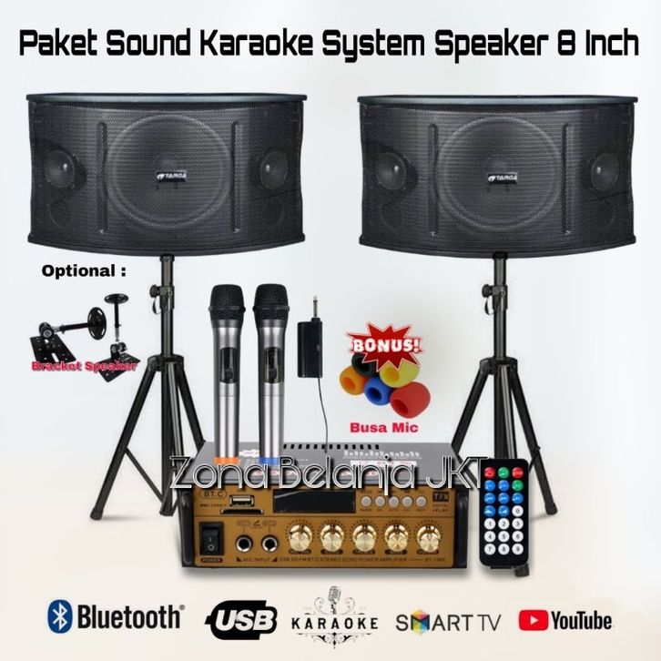 PAKET KARAOKE HEMAT SPEAKER 8 INCH AMPLIFIER USB BLUETOOTH KARAOKE RUMAH SIAP PAKAI MURAH BERKUALITAS ( SET 1 )