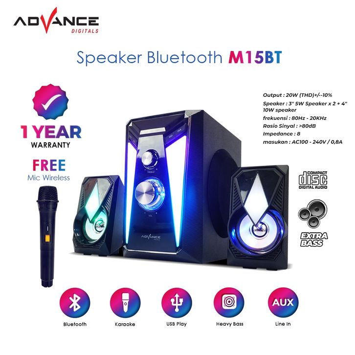 Advance M15BT Speaker Bluetooth Bass Wireless Portable Aktif BONUS Mic Wireless