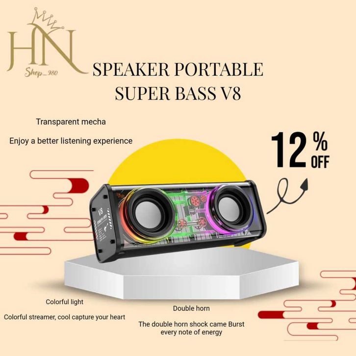 V8 speaker Mecha transparan suara ganda, pengeras suara RGB portabel Bluetooth Bass olahraga Super luar ruangan Subwoof