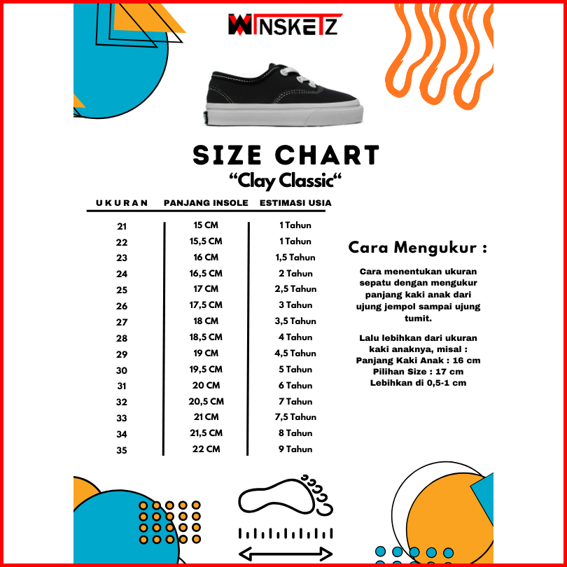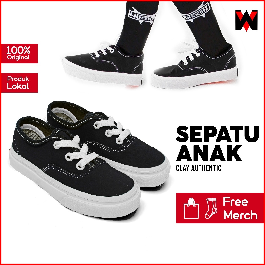 Winsketz - Sepatu Anak Sneakers Hitam Putih Unisex Laki Perempuan Clay Authentic