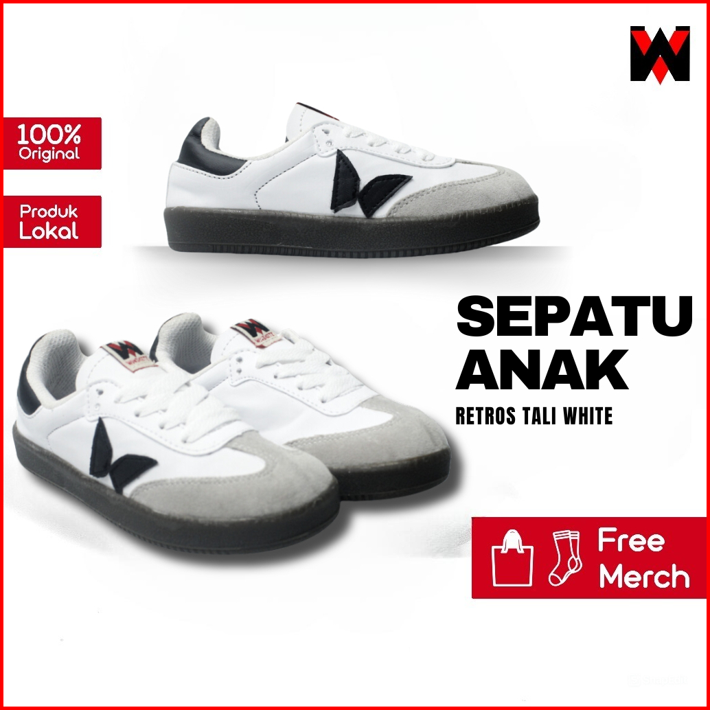 Winsketz - Sepatu Anak Laki Laki Perempuan Unisex Tali Retros White