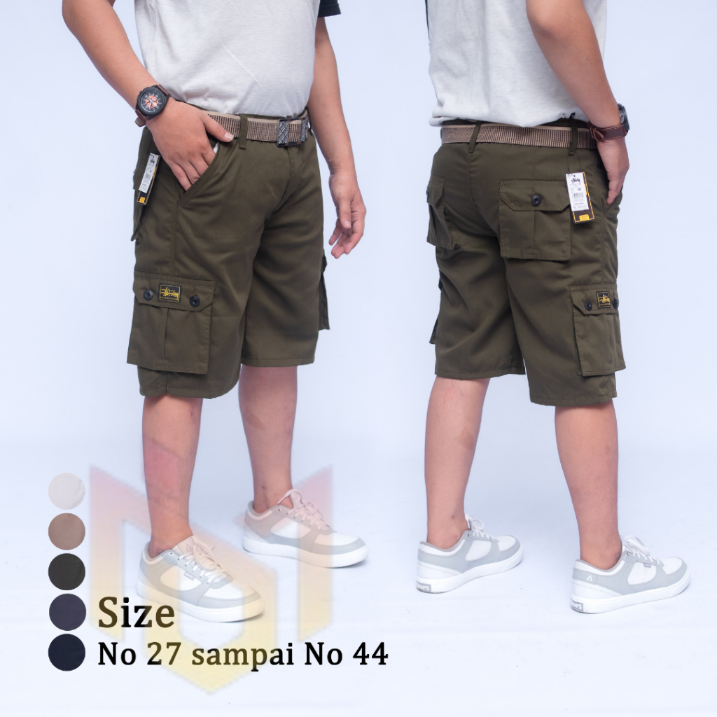 (Gratis Ongkir) Celana Cargo Pendek Pria Distro Kargo Jumbo Laki Santai Pdl Hitam Size 27-44