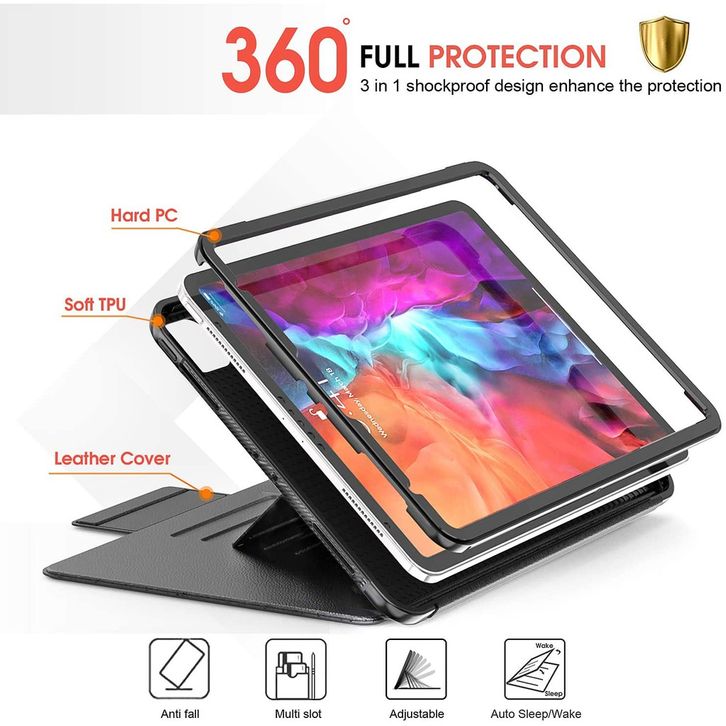[SALE] Case iPad Pro 11 2020 Smart Leather 7 Magnetic Stand Cover With Pencil Holder Multi Angle