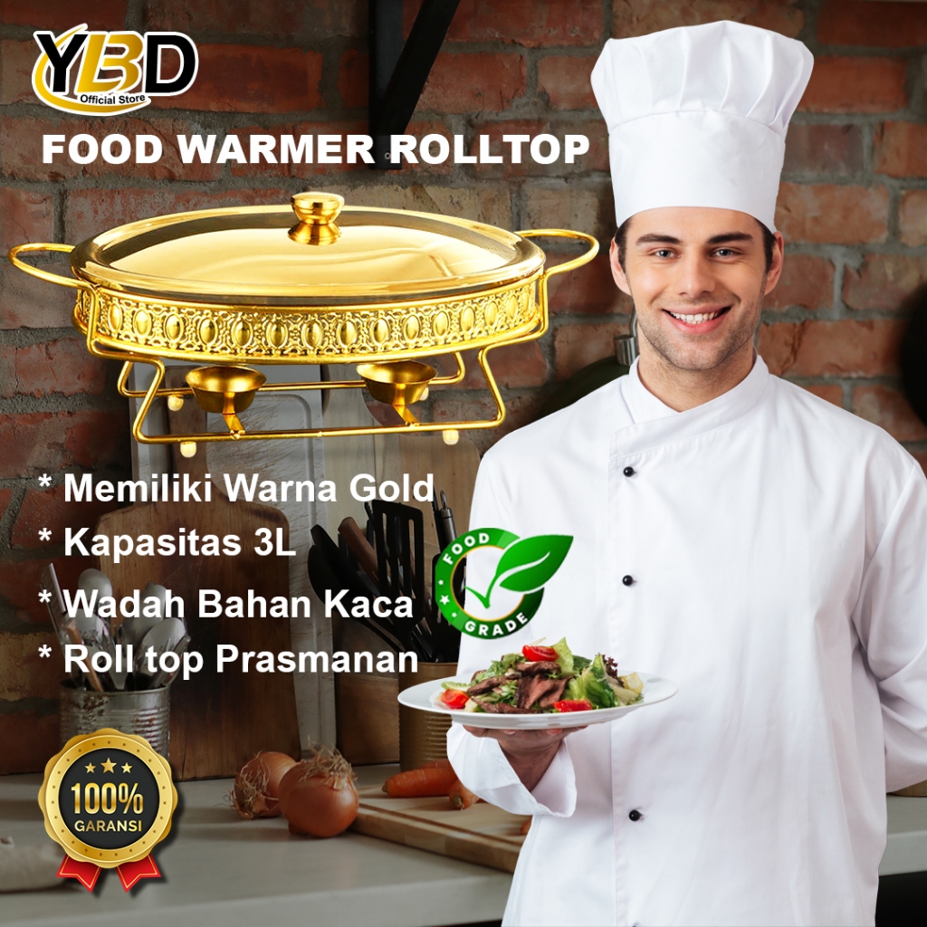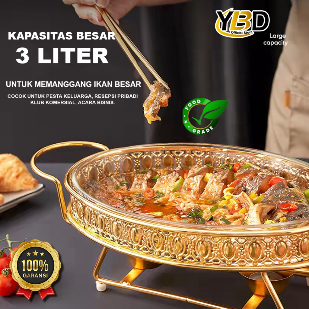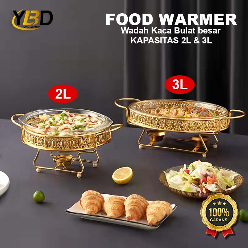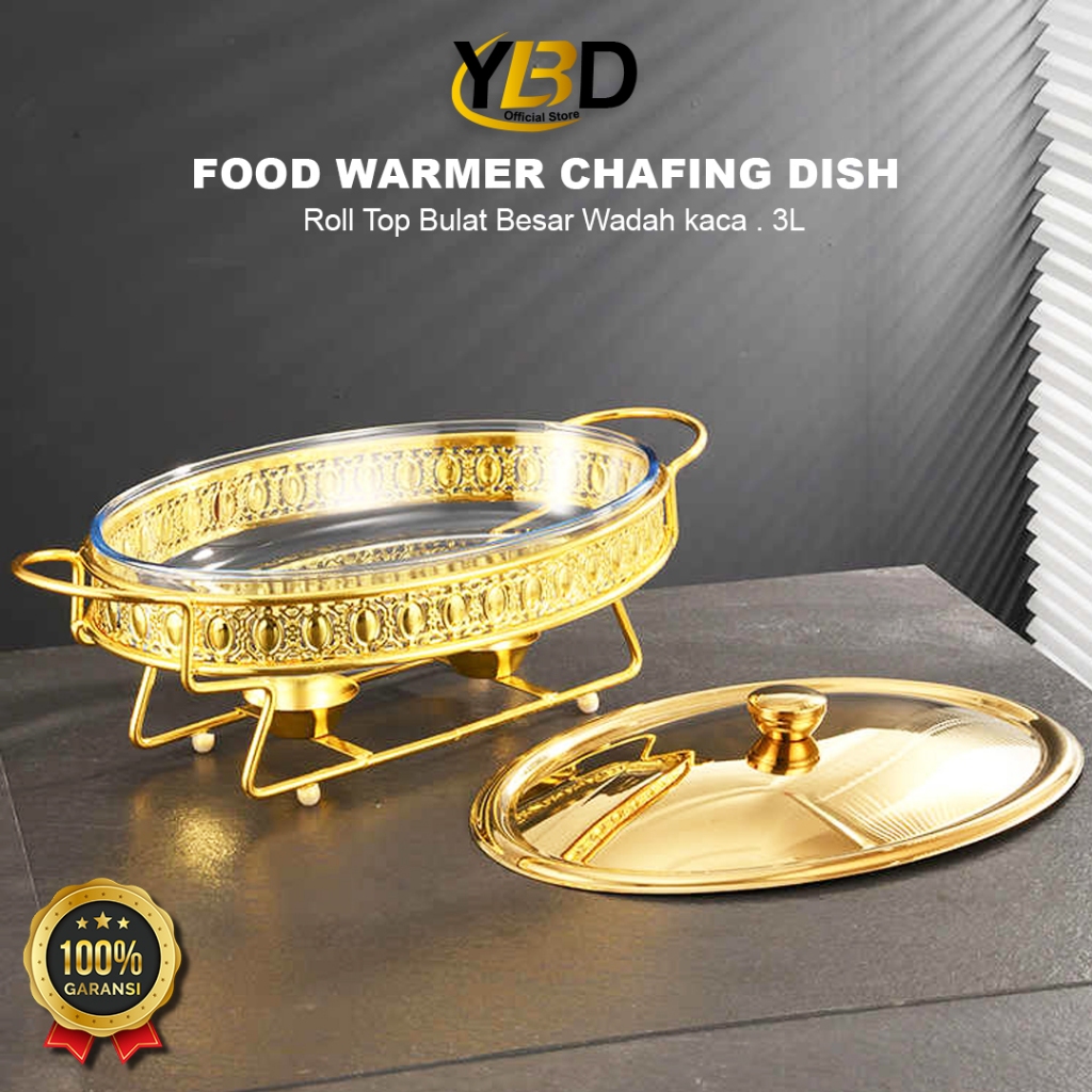 Roll top Food Warmer Bulat Besar Wadah Kaca Kapasitas 2L & 3L Chafing dish prasmanan Roll top prasmanan