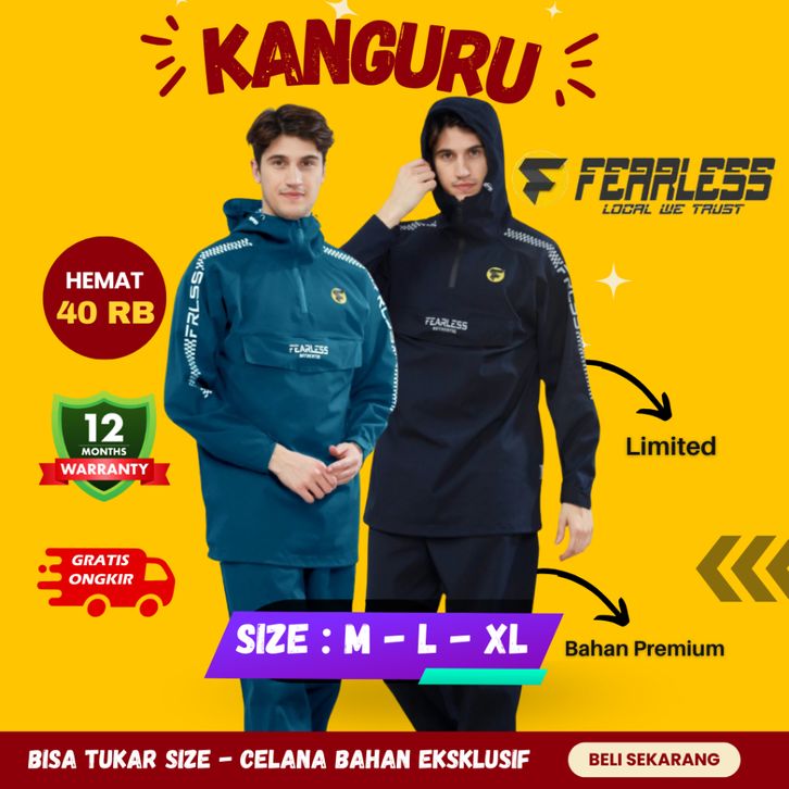Jas Hujan Pria Wanita Dewasa Jas Hujan Fearleas Jas Hujan Saku Kangguru Pria Wanita Dewasa Anti Air Bahan Taslan Import