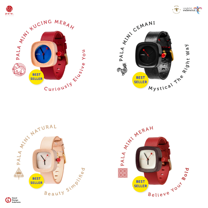 Jam Tangan Wanita Pria Unisex Pala Nusantara Mini Series Varna Satva Jam Tangan Kayu Dan Kulit Asli Original