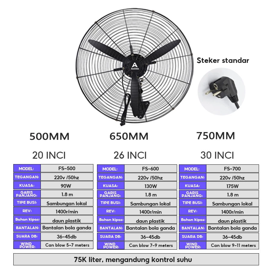 Aolida kipas angin dinding 20/26/30 inch kipas angin Cocok untuk tempat besar di pabrik dan restoran Wall Fan/kipas indu