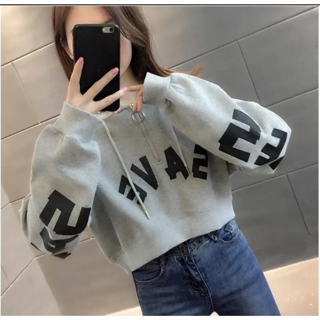 Save Sweater Crop Wanita Oversize | Sweater Crop Hoodie Wanita Korean Style Kekinian