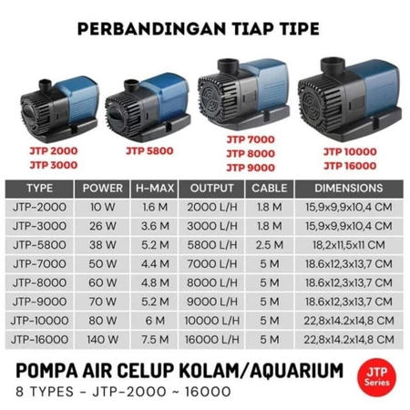 SUNSUN JTP PRO 2000 2500 3000 4800 5800 Liter/Jam JPRO / ECO / LOW JPRO SNI Original Pompa Low watt aquarium kolam ikan
