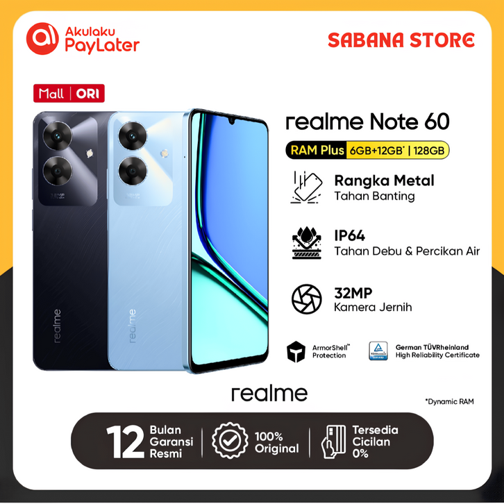 [Mall] REALME NOTE 60 [4GB+64GB] [6GB+128GB] GARANSI RESMI 1TAHUN HP REALME NOTE 60 PAYLATER TANPA DP CICILAN 12 BULAN