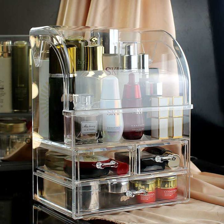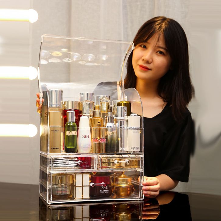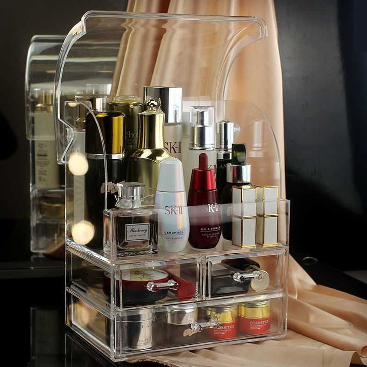 Rak Kosmetik Dengan Laci Anti Debu Multifungsi Tempat Penyimpanan Make Up Skincare ak Akrilik Terbaru