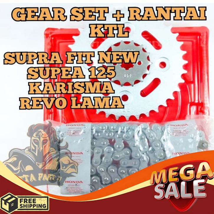 GEAR SET + RANTAI HONDA KTL KUALITAS ORIGINAL SUPRA FIT NEW SUPRA 125 KARISMA REVO LAMA