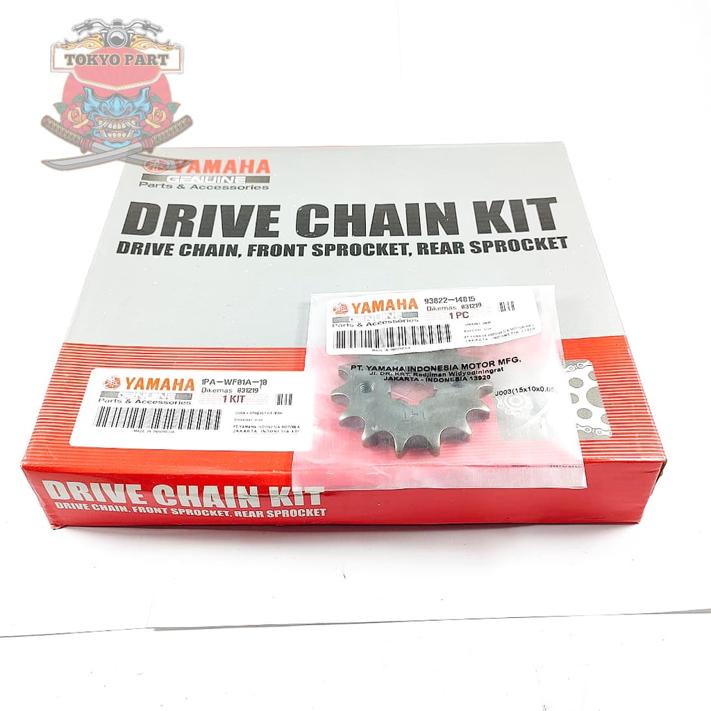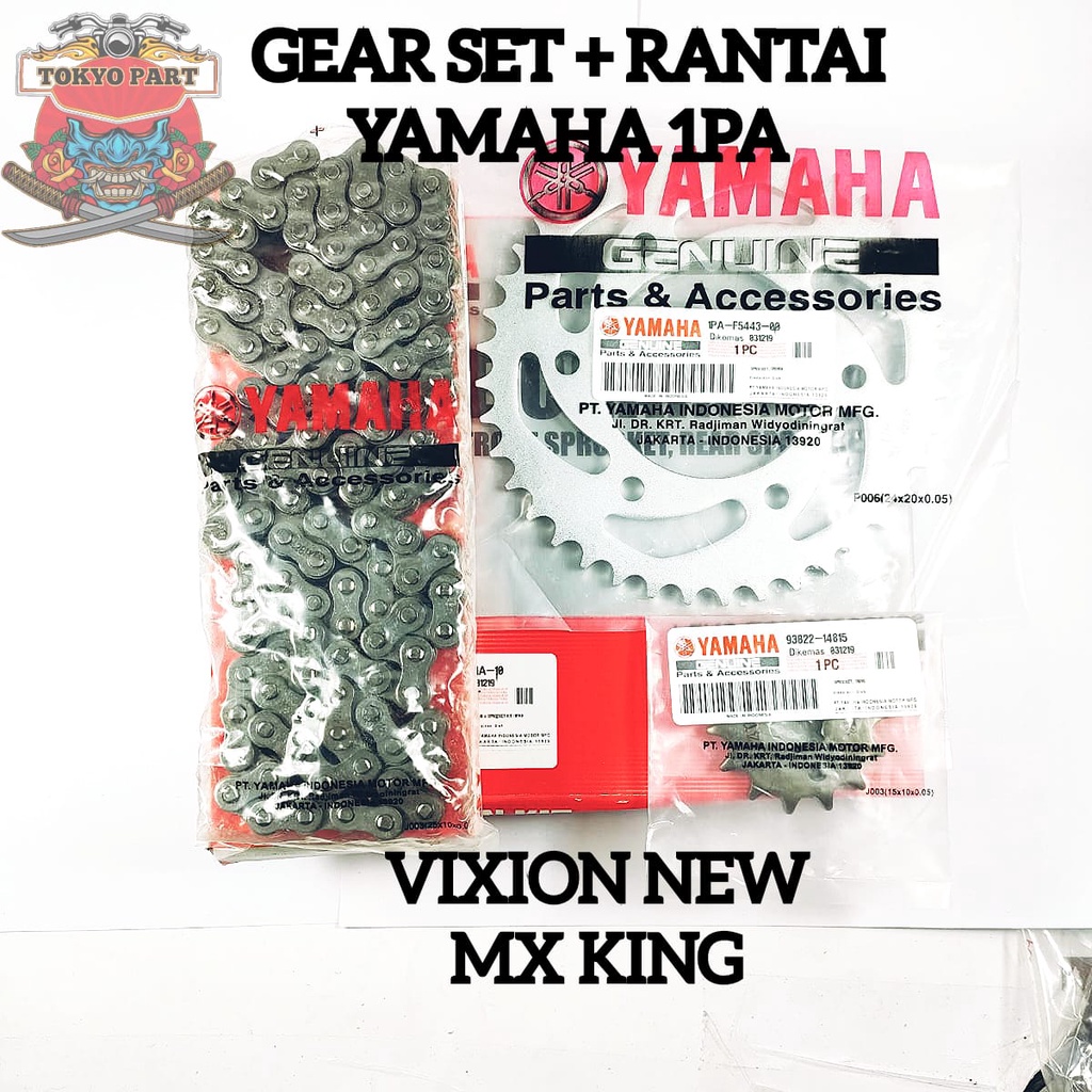 GEAR SET + RANTAI YAMAHA 1PA KUALITAS ORIGINAL PRESISI PERPUTARAN RANTAI STABIL TIDAK LONCAT LONCAT DAN AWET UNTUK MOTOR