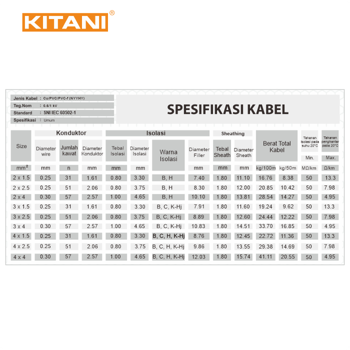 KITANI - NYYHY 2×4 MM² - KABEL TEMBAGA SERABUT - 50 METER