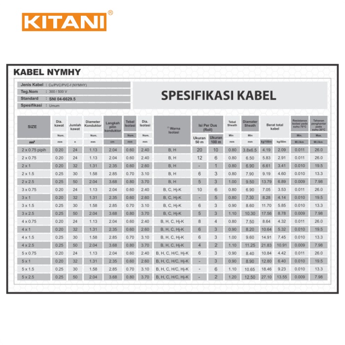 KITANI - NYMHY 3×1.5 MM² – KABEL TEMBAGA SERABUT - 25 METER