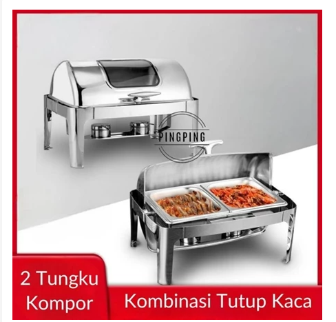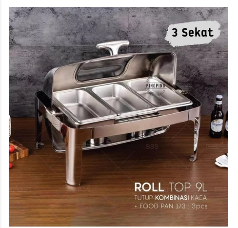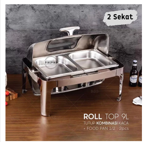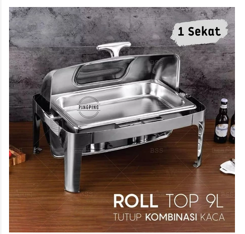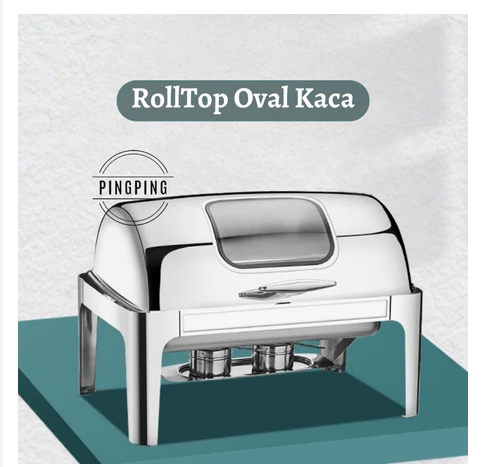 PROMO Chafing Dish/RollTop Segi Oval Kaca Stainlees Steel Kualitas Tinggi 9L