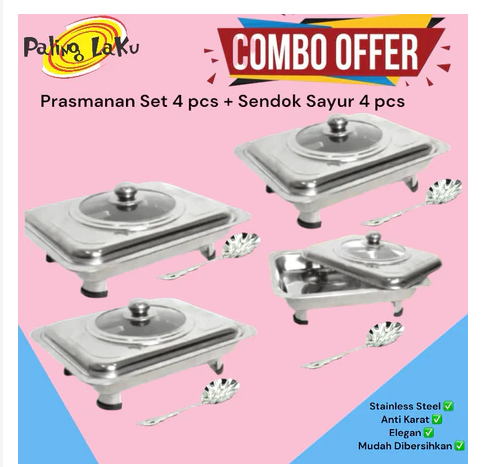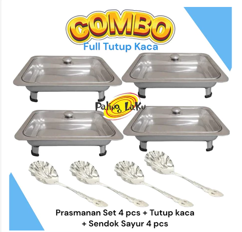Prasmanan Combo Hemat Set 4 pcs fast food kaca + 4 pcs Sendok Sayur