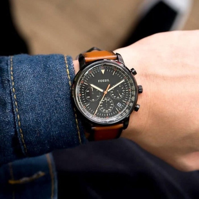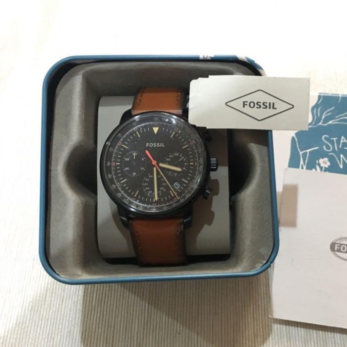 JAM TANGAN WANITA FS5501 GOODWIN CHRONOGRAPH MEN BROWN LEATHER NEW ORIGINAL PREMIUM BEST SELLER