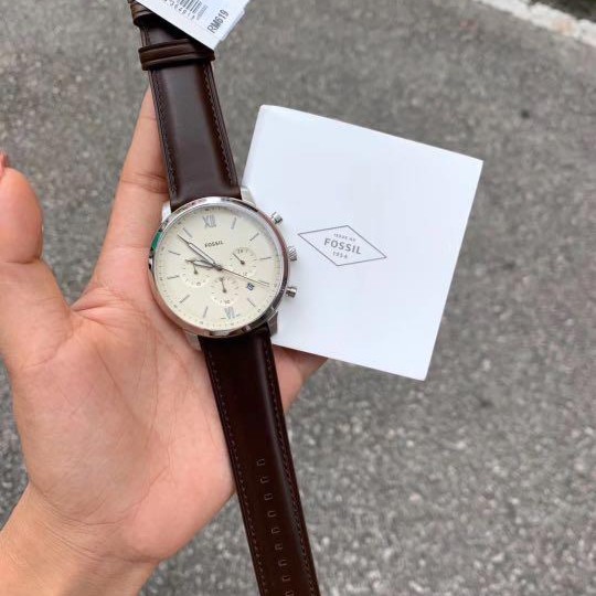 JAM TANGAN WANITA FS5380 CHRONOGRAPH MEN BEIGE DIAL BROWN LEATHER STRAP NEW ORIGINAL PREMIUM BEST SELLER