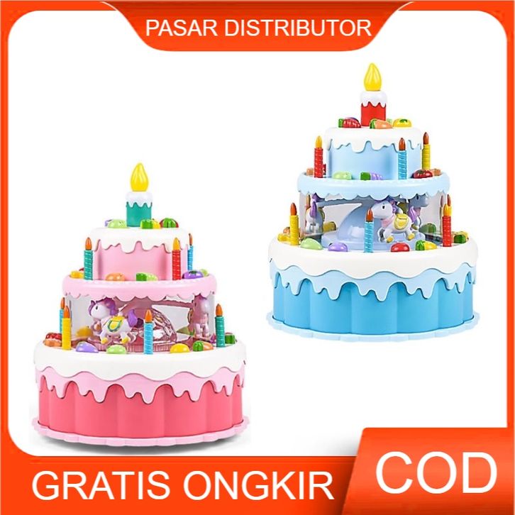 Mainan Anak ELECTRIC ROTARY CAKE Mainan Kue Ulang Tahun Birthday Cake
