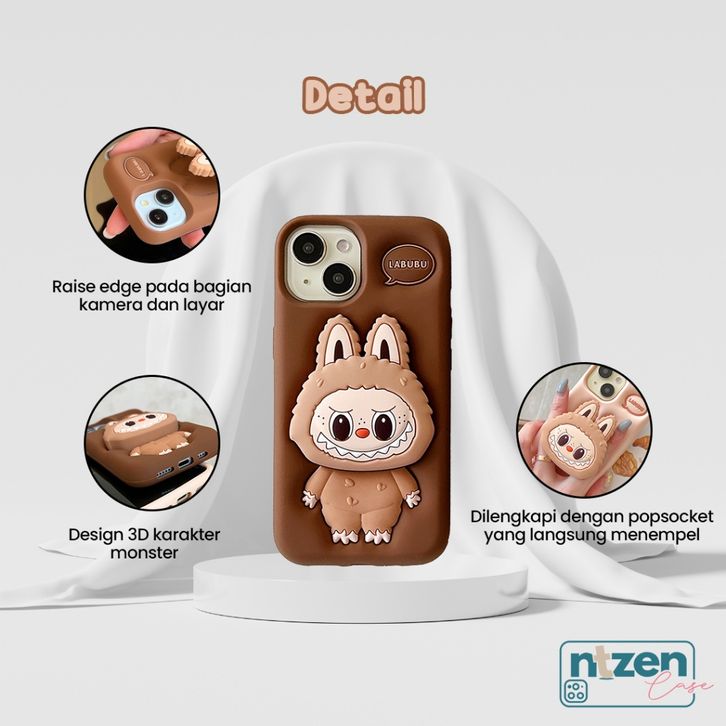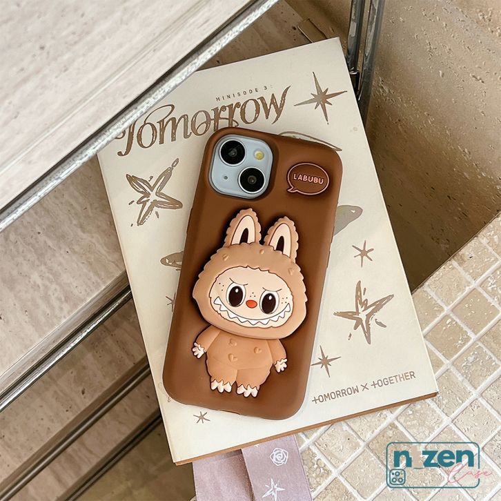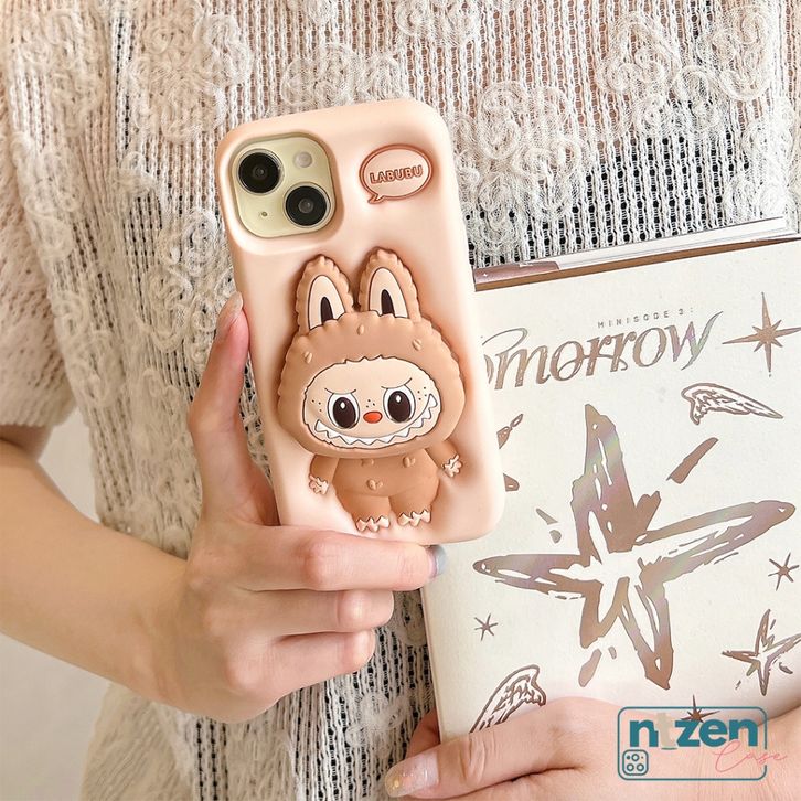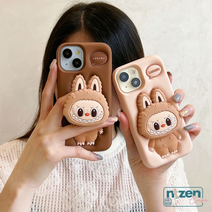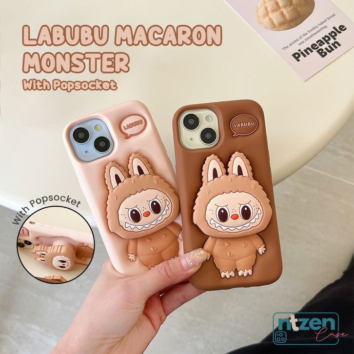 Ntzen Case Labubu Macaron Monster with Popsocket Compatible for iPhone 11 12 13 14 15 Pro Max Plus