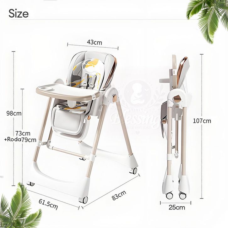 KURSI MAKAN ANAK KURSI BAYI LIPAT MINIMALIS - HIGH CHAIR + AYUNAN SEAT KULIT LEMBUT, UNTUK 0-5 TAHUN