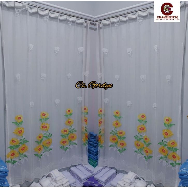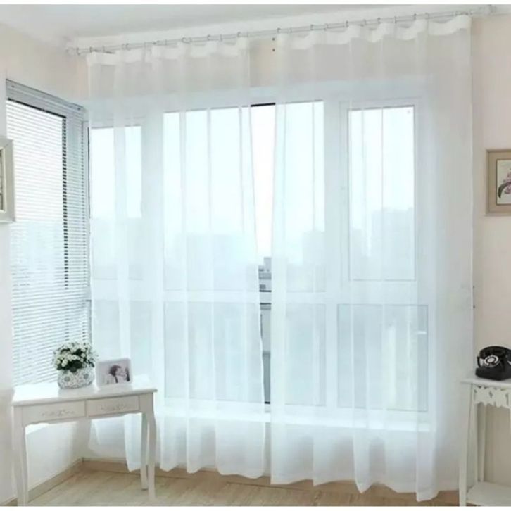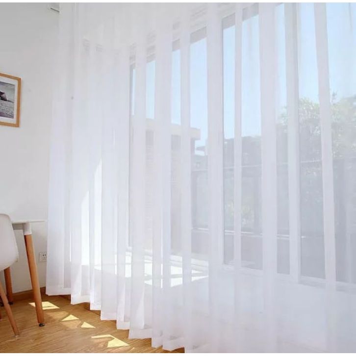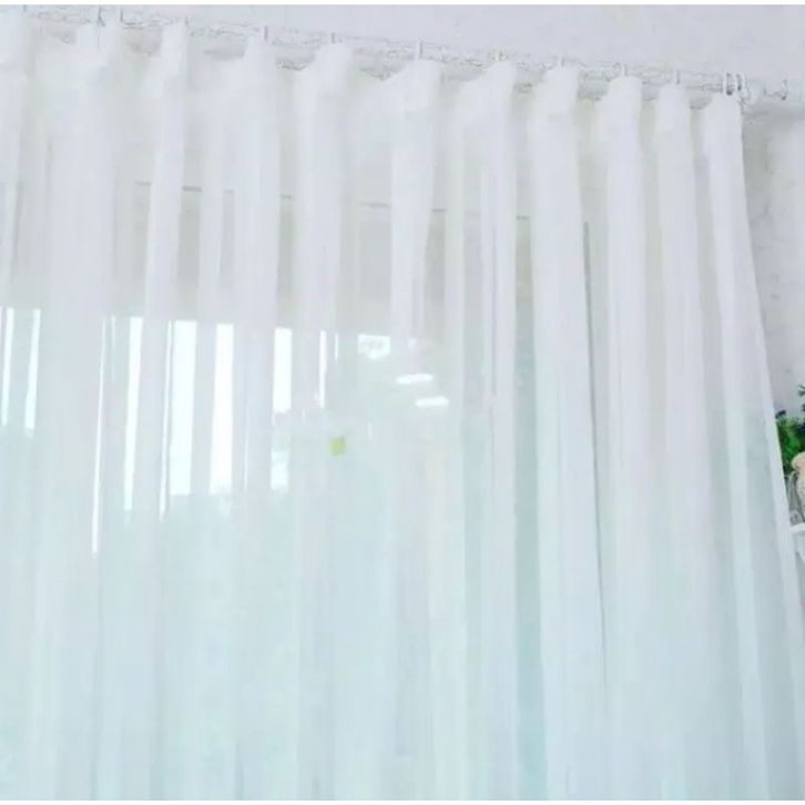 Vitrase Gorden Jendela Mewah Elegan Putih Polos Hordeng Berlipat Tipis Ukuran 110x200CM