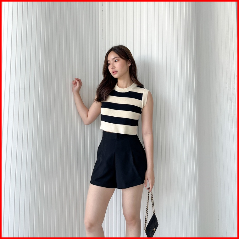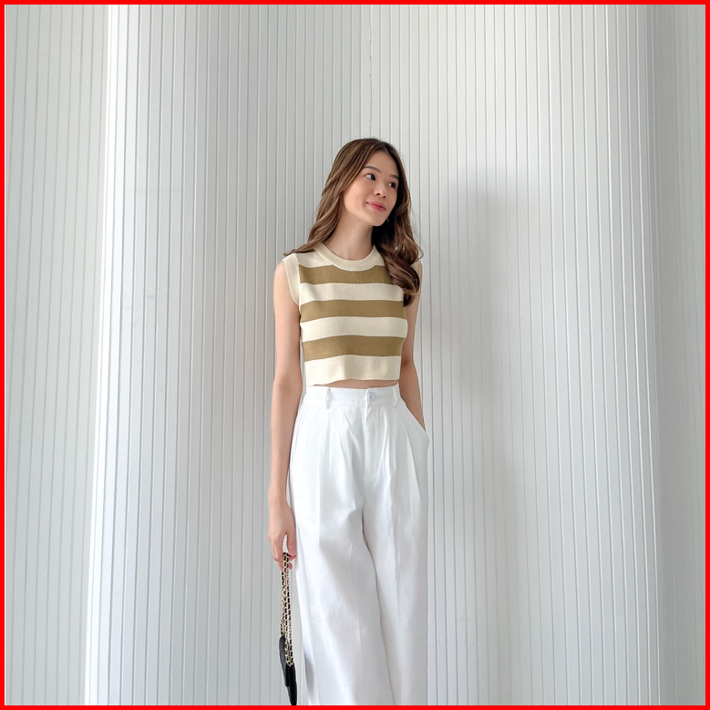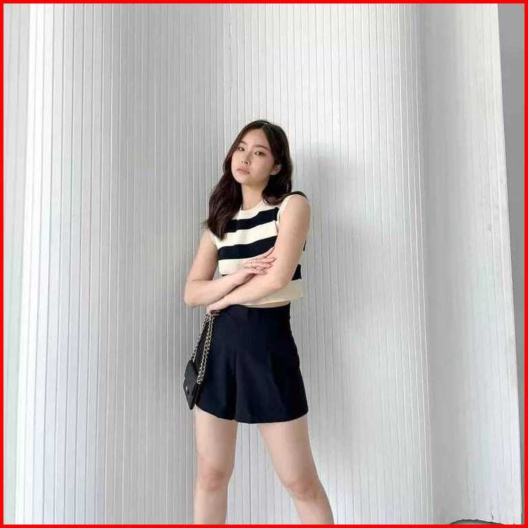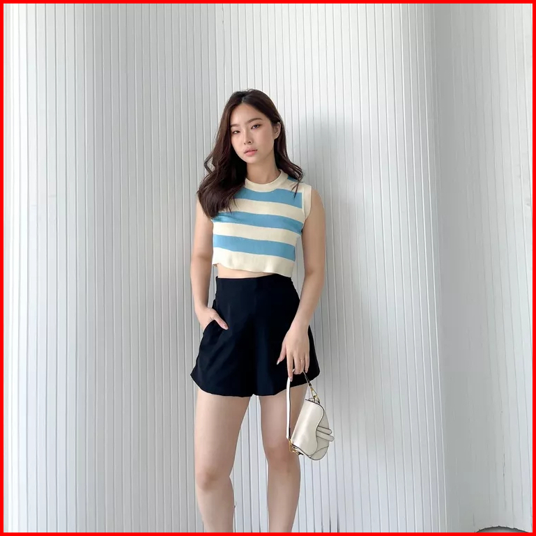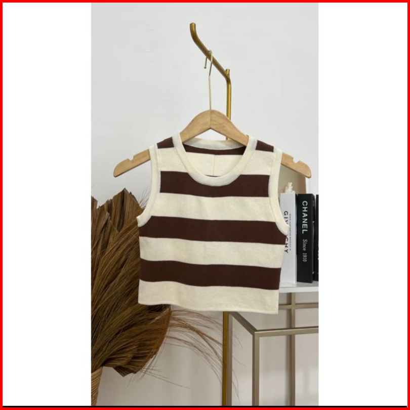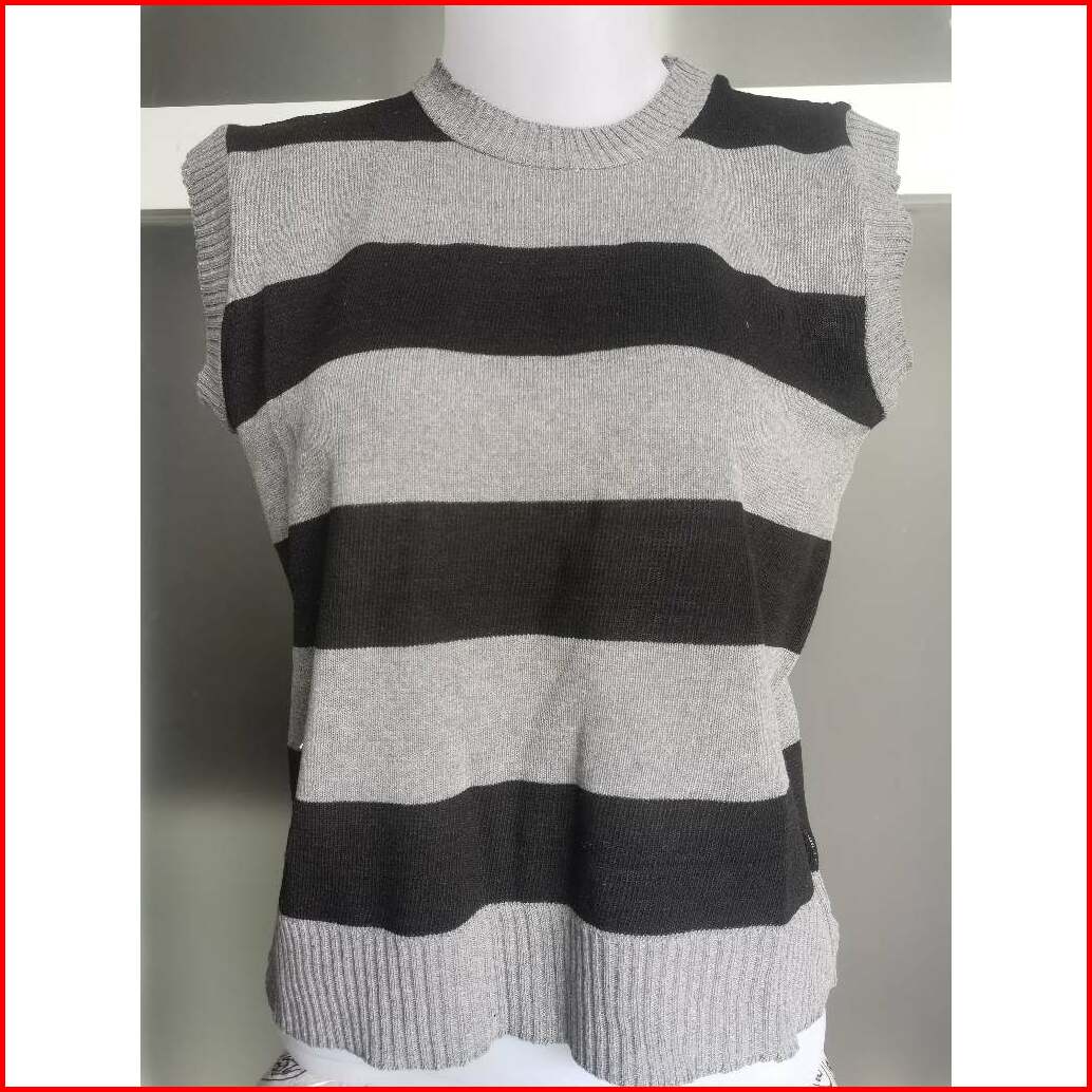 Vest Kutung Knit Strip Korea Arvi24- Rajut Rompi Wanita Strip 2 Tone- Gestrick