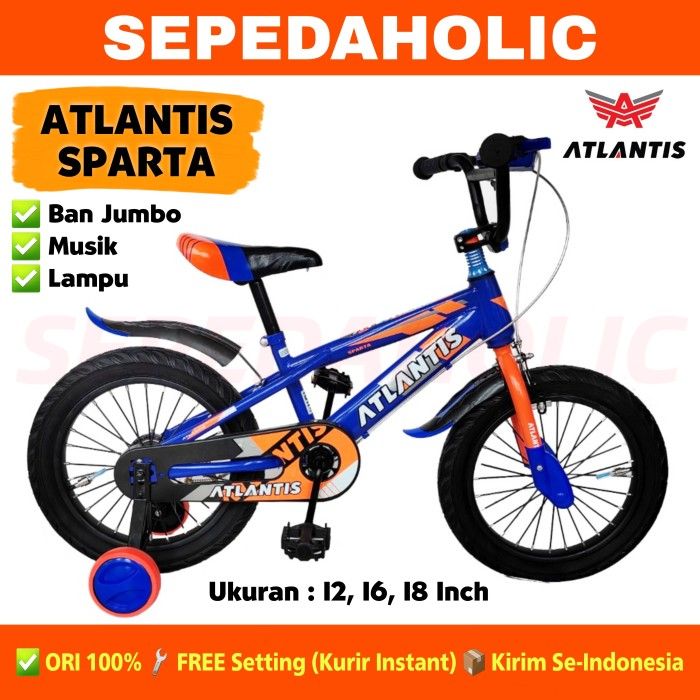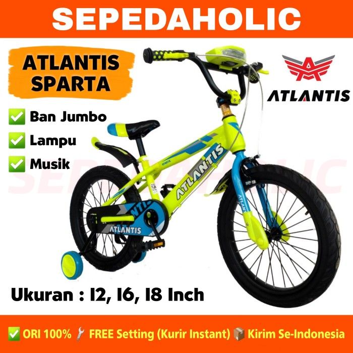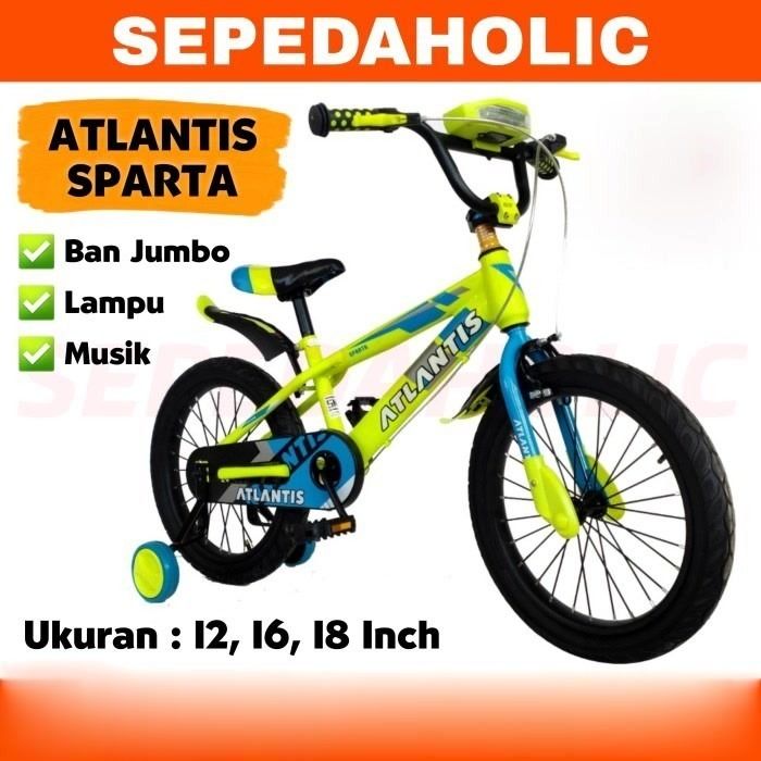 Sepeda Anak Laki BMX ATLANTIS SPARTA Ban Jumbo Ukuran 12 16 18 Inch - Hijau Stabilo, 16 Inch