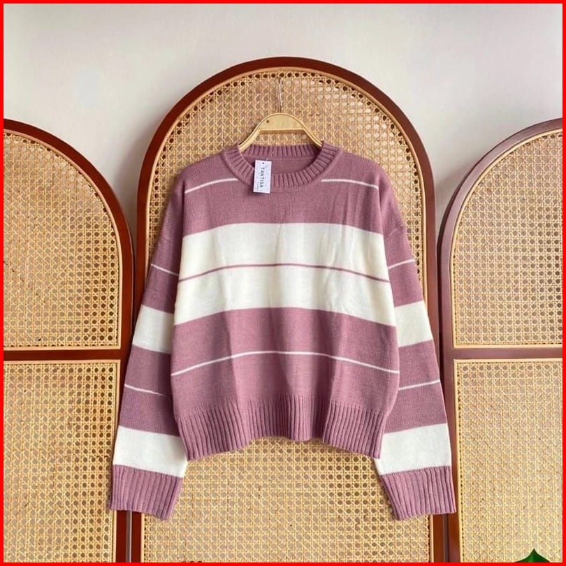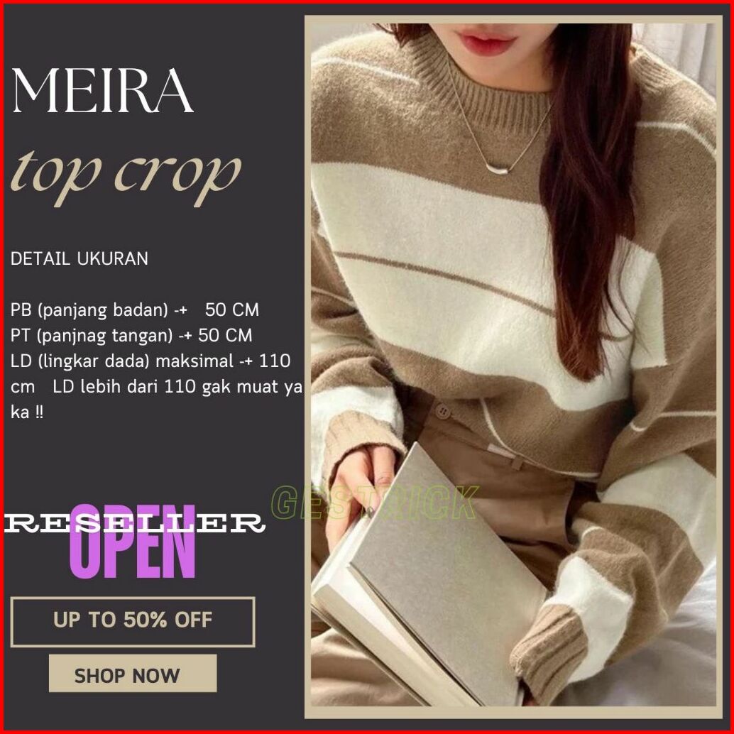 Top Crop Knit Meira Rinsyi Suji Atasan Rajut Wanita Blouse Knited Wear Lengan Panjang- Gestrick