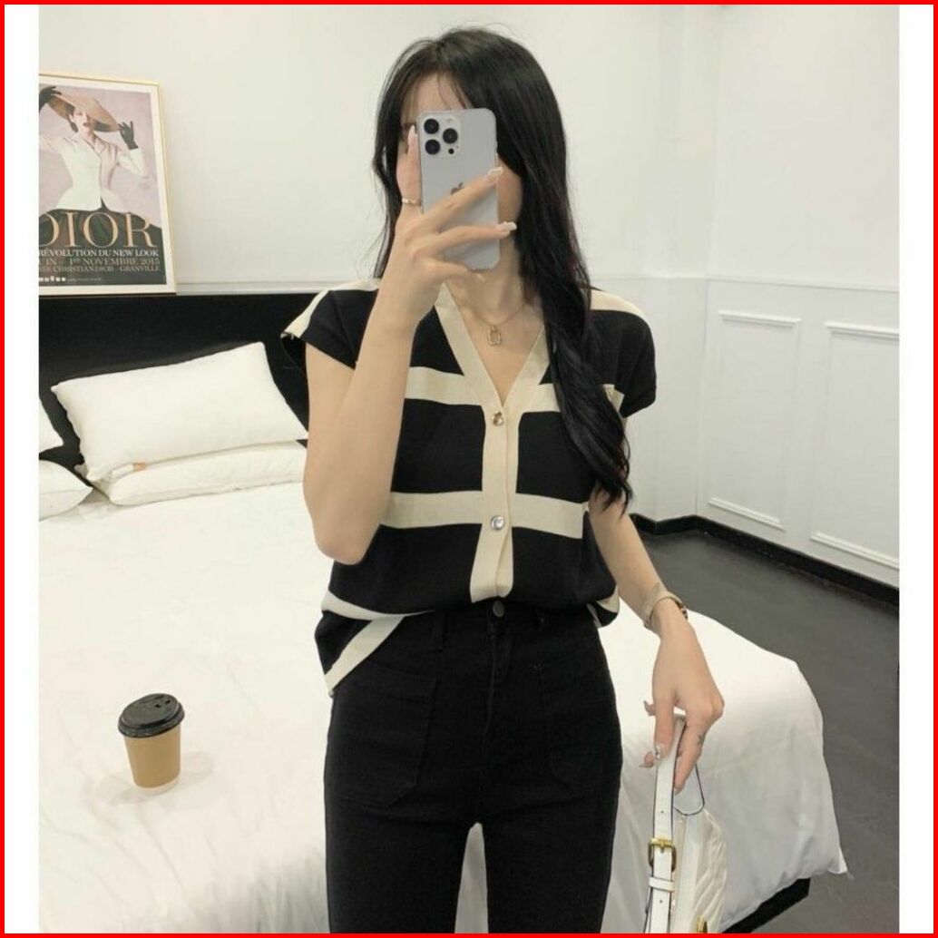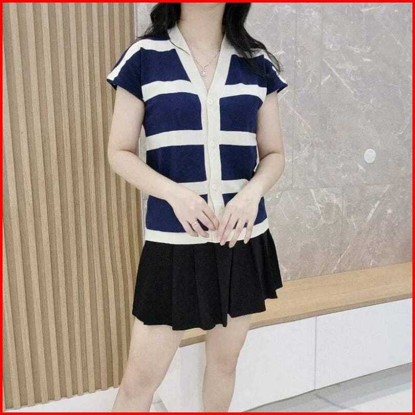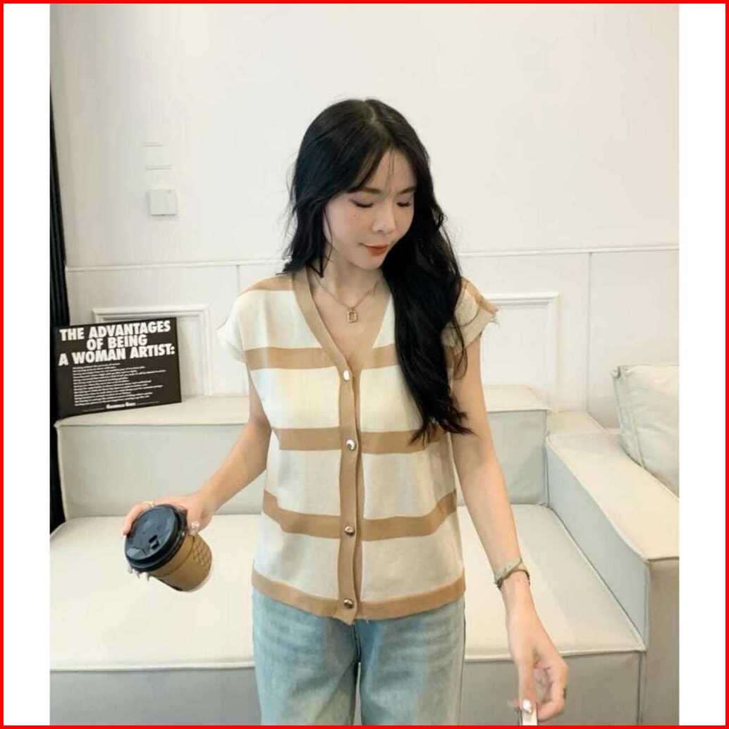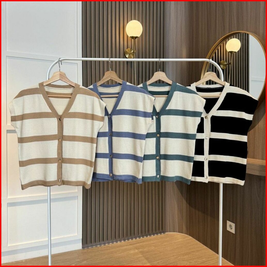 Vest Kutung Rajut Valinda Strip Kancing Twotone