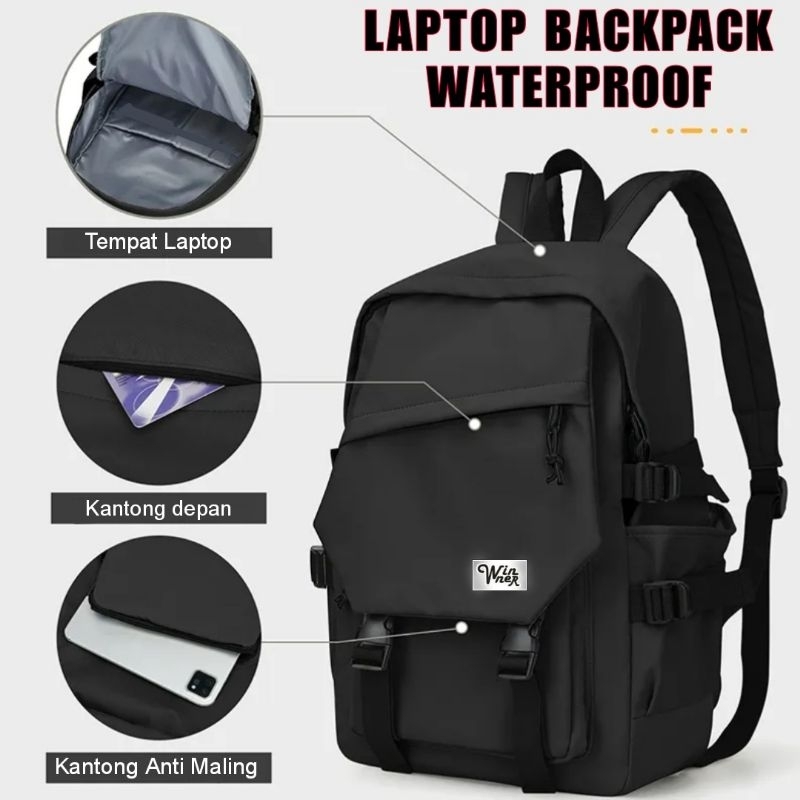 Tas Ransel Laptop Pria Waterproof Tas Distro Tas Sekolah Smp Sma Backpack Punggung Winner 095