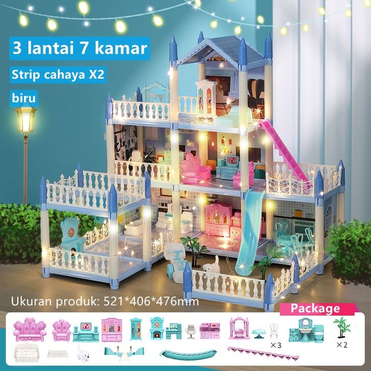 MAINAN ANAK PEREMPUAN/3D PRINCESS MAINAN ANAK BIG VILLA DIY RUMAH BONEKA PINK CASTLE/DIRAKIT RUMAH BONEKA MAINAN ANAK