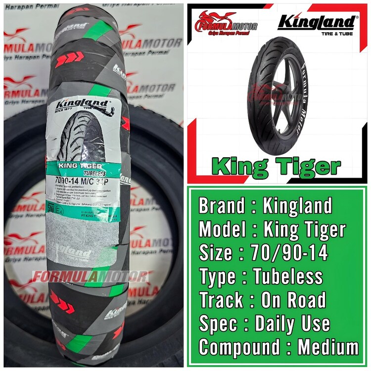 Ban Luar Motor Matic Beat Mio Vario Ring 14 Kingland King Tiger Uk 80/90-14 Tubeless Original Produksi Terbaru