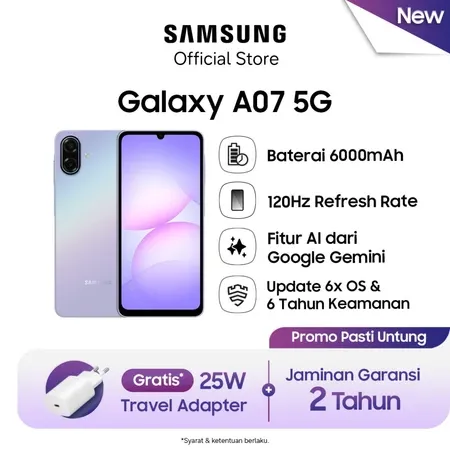 [Mall] Hp Samsung Galaxy A07 4/128GB Black Original Terbaru 2025 2026 Garansi Resmi Tanpa Dp Murah Official Store