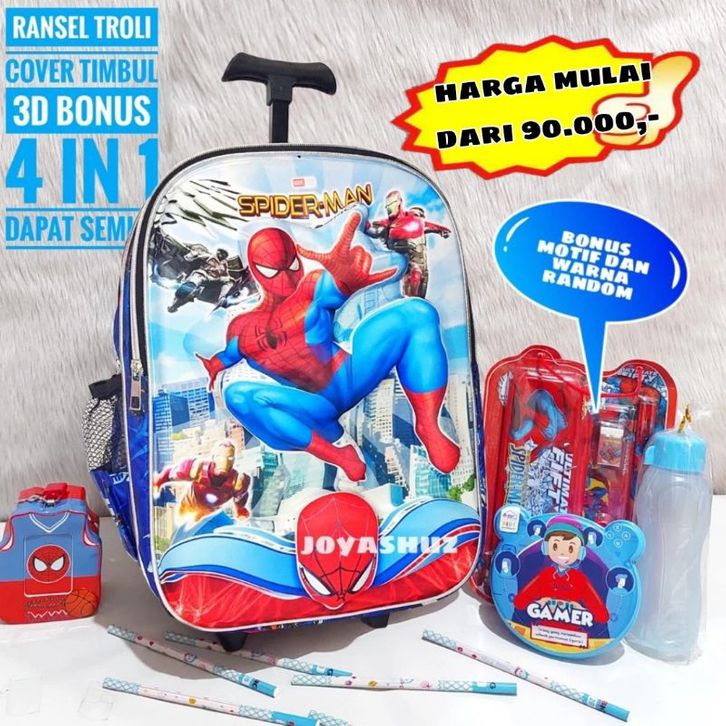 TAS SEKOLAH ANAK LAKI LAKI TAS TROLI ANAK LAKI LAKI KARAKTER SPIDERMAN TAS TROLI 3D IMPORT