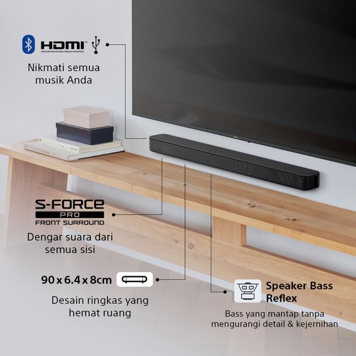 Sony HT-S100F Soundbar Tunggal 2ch Bluetooth - Black Original